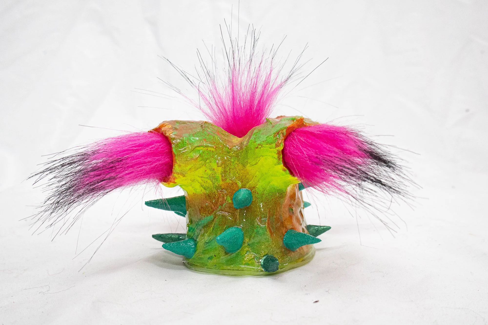 Columnar Symphony, 5in x 9in x 8in, resin, epoxy, acrylic, gypsum, paper clay, faux fur, poly-fill, and fabric, $450