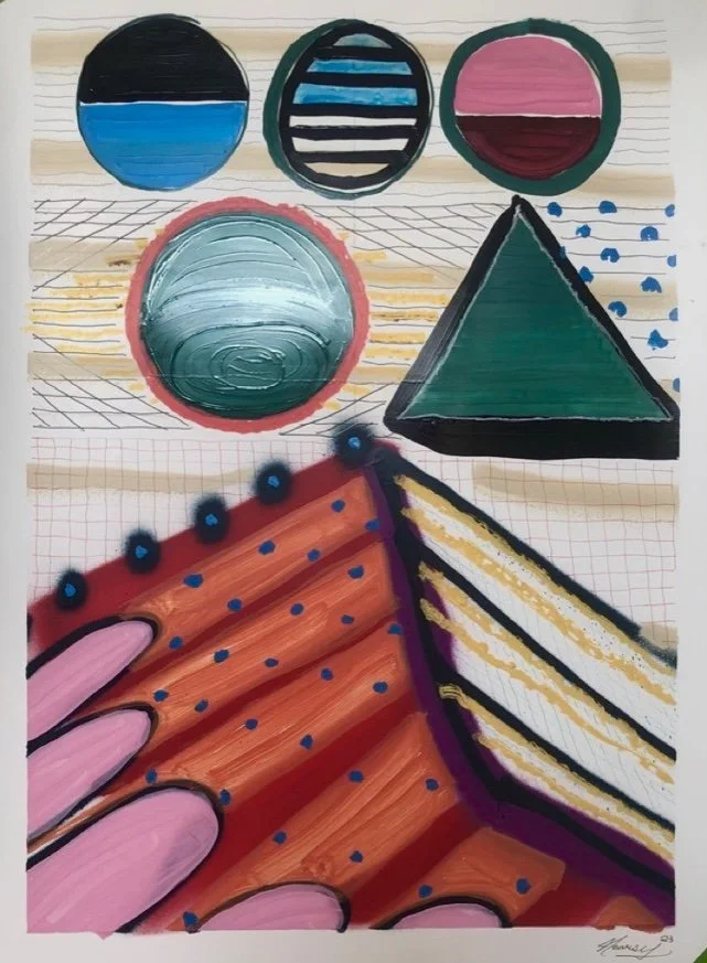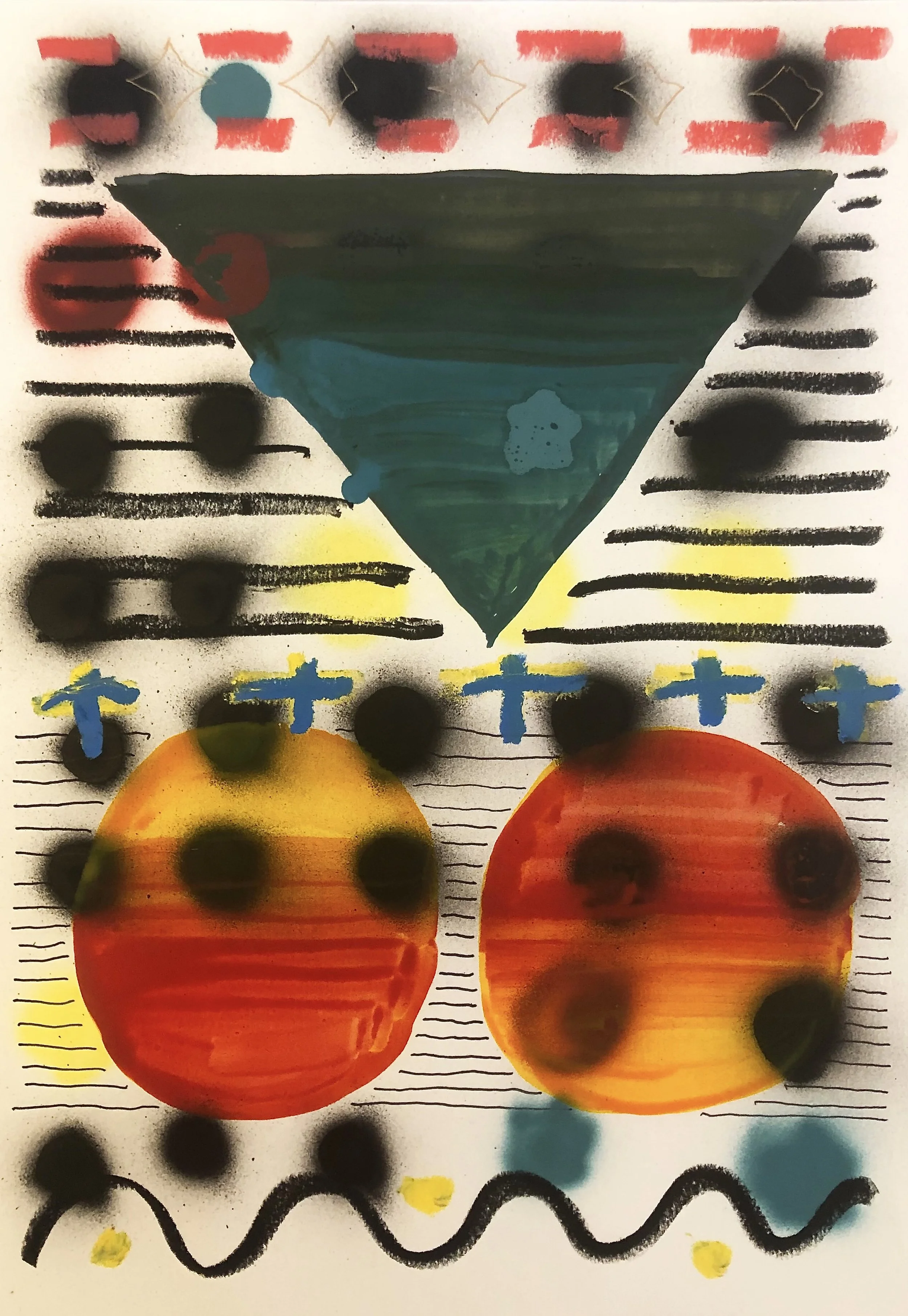 J.B. Nearsy is a self-taught mixed media painter, printmaker, sculptor, designer, and experimental artist working and living in St. Louis, Missouri. His first lessons with art as an immersive experience were learned through graffiti in Southern California. Graffiti art taught the artist lessons unique to contemporary movements such as color relationships, abstraction within set parameters, and painting on a large scale. These learning experiences continue to indirectly shape and influence his work to this day.