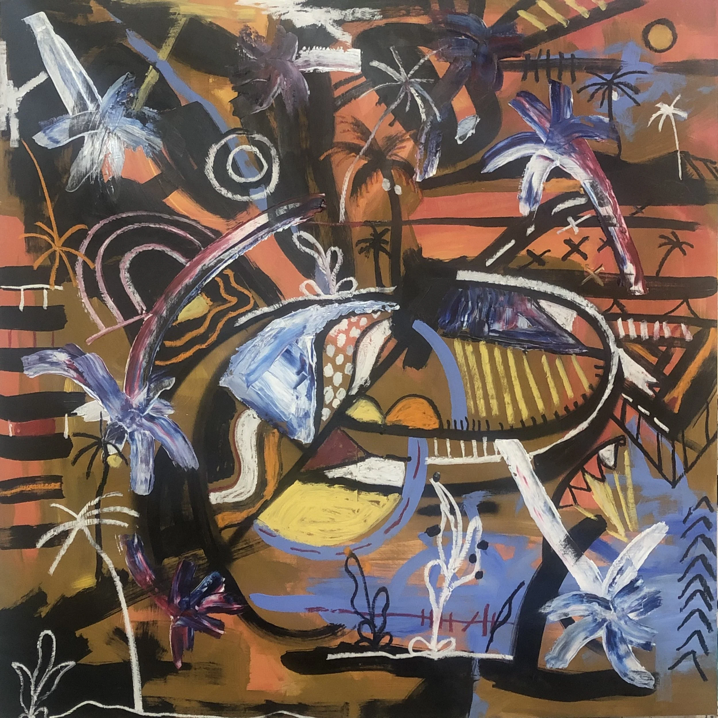 Caribbean Gravestone, 48in x 48in, mixed media on canvas, $1,800