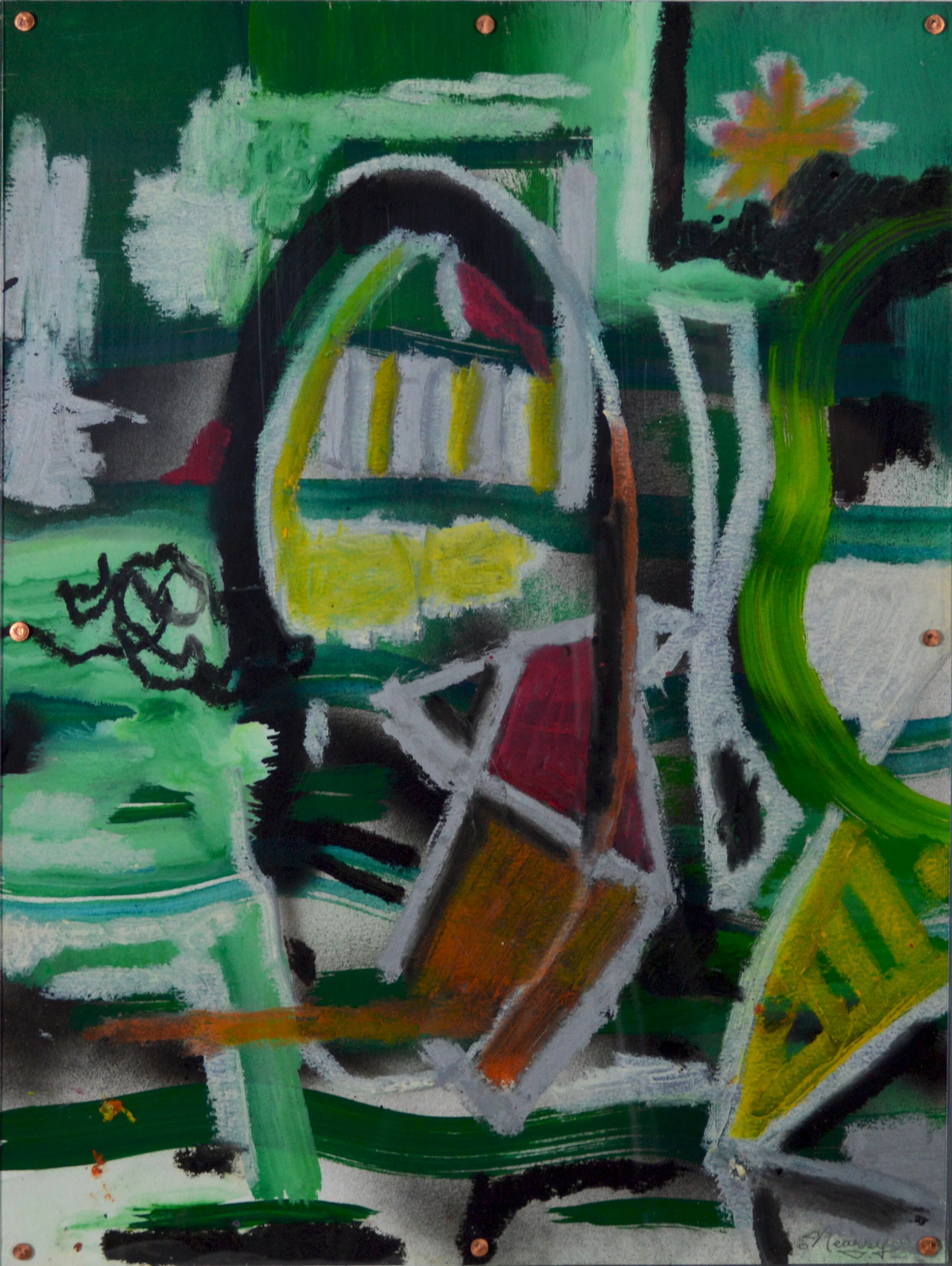 Escalator, 60in x 48in, mixed media on panel, $2,150