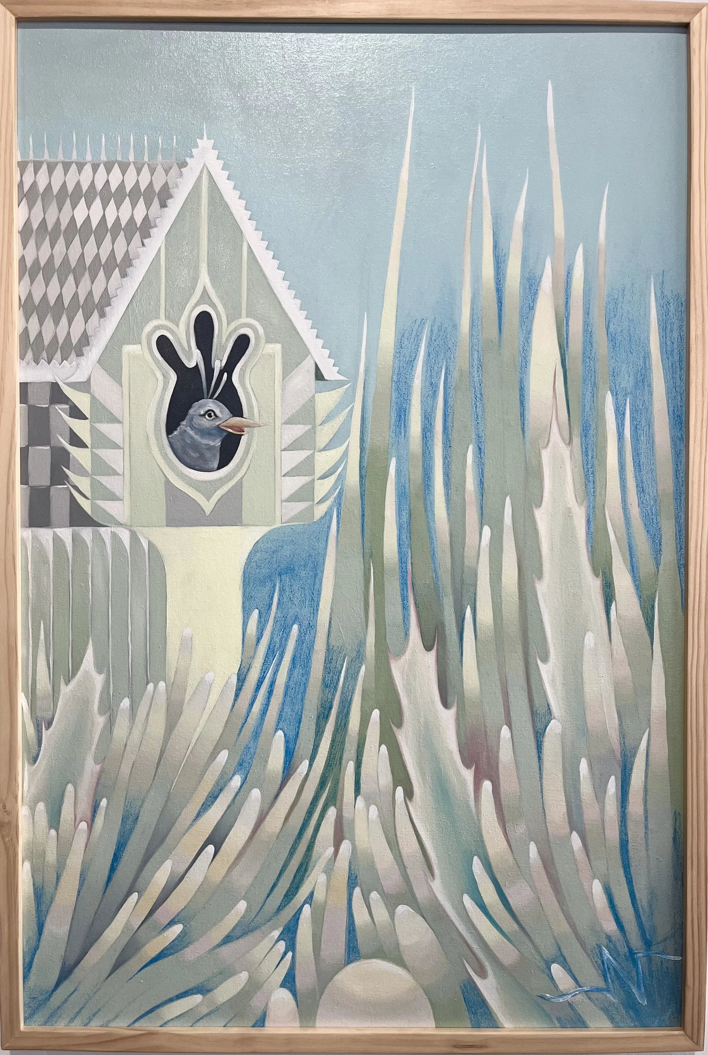 Housebird, 36 3/4in x 25in framed, oil on canvas, $875