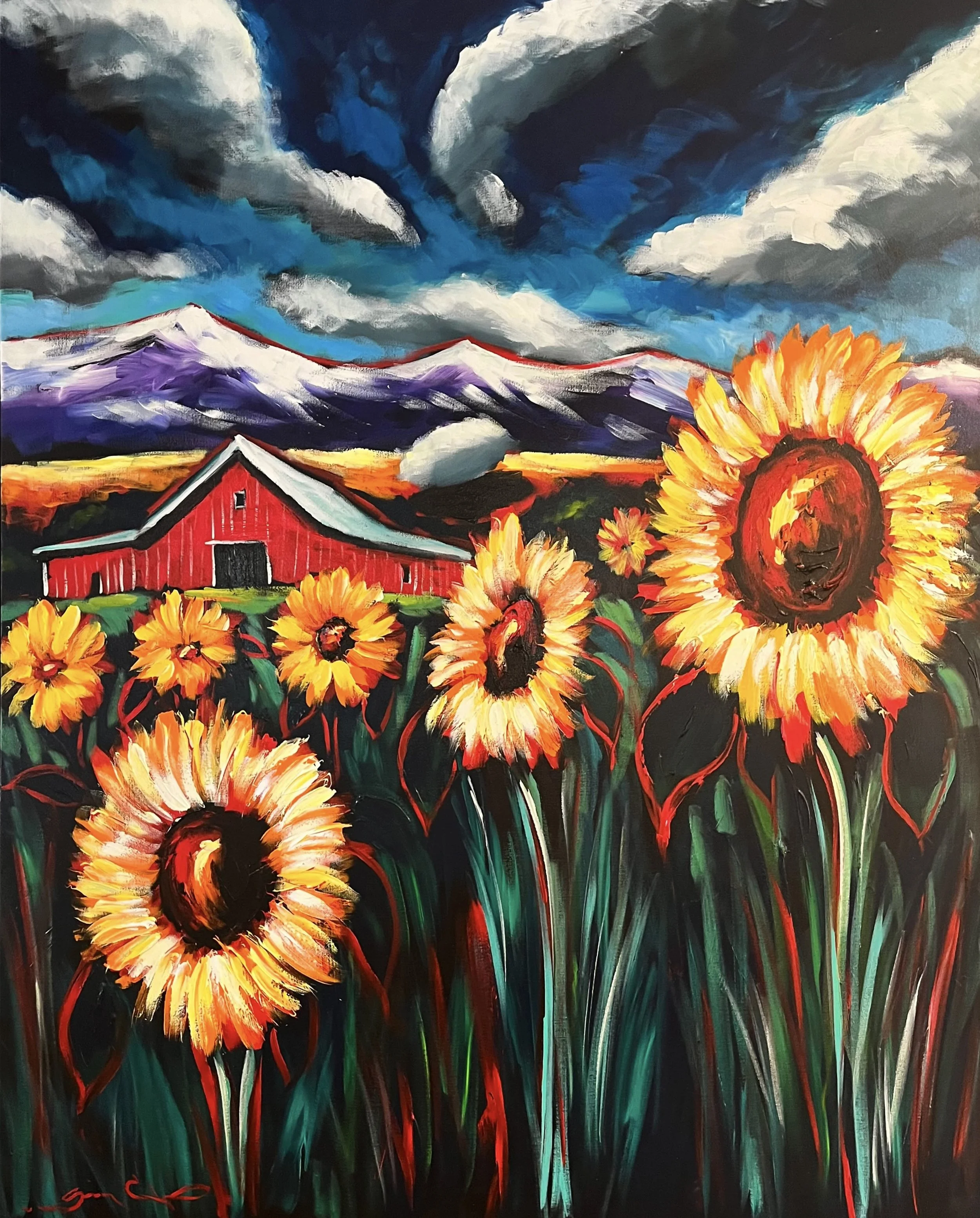 Sunflower Field, 62in x 49 3/4in framed, oil and acrylic on canvas, contact gallery for price
